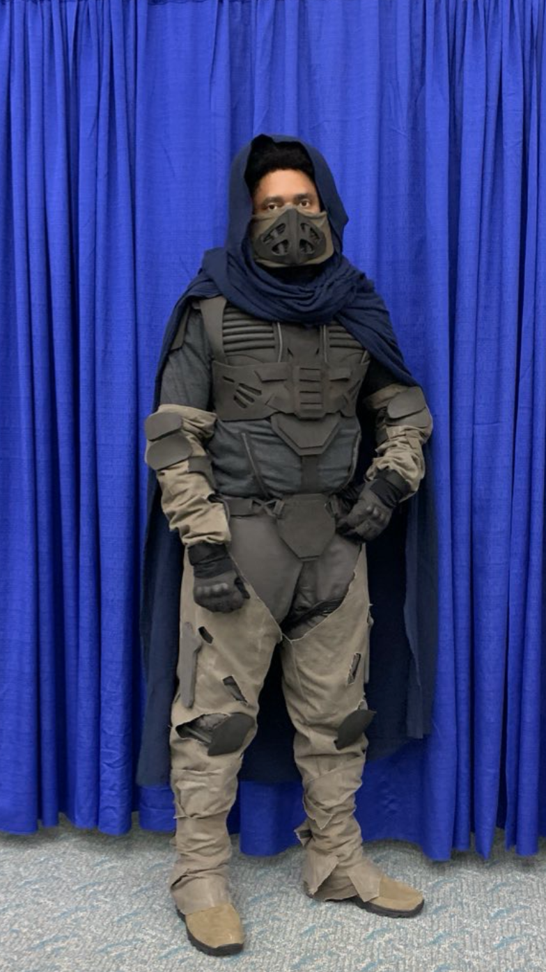 Not only was 2021 the first time I have ever attended a costume contest, it was also the first one I competed in. Sometimes good things can happen when you take a chance. I decided on a whim to do the Dune stillsuit as a cosplay and enter the Comic Con Masquerade after getting an email that there was a few spots open. This costume whooped my behind chile…I had to hand draw all the patterns for the armor, figure out how to connect all the pieces to get it off and on (Velcro saved me), and I def thought I would not finish, but I didn’t want to miss a chance to join my first show due to the opportunity. Turns out that was a good decision cause I won the Costumer’s Guild West scholarship! It comes with a year membership and a trip to CostumeCon, can’t wait to learn more and level up.